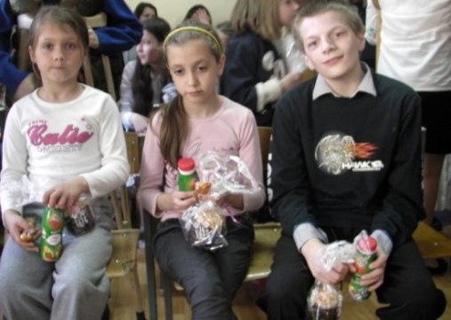 В дни Светлой Седмицы поздравления и подарки получили 420 детей из 4-х специализированных учреждений. Благодаря совместным усилиям волонтеров паломнического центра и священнослужителей Спасо-Преображенского женского монастыря (с. Писковка) порадоваться Светлому празднику смогли дети из Вишевицкой специальной школы интерната для умственно отсталых детей (с. Вишевичи Радомышльский район, Житомирская область), детского дома семейного типа "Калинка" (с. Осички, Радомышльский район, Житомирская область), Радомышльской санаторной школы для кардиологически больных детей и Ладыжинского интерната для детей-инвалидов (Винницкая область).
