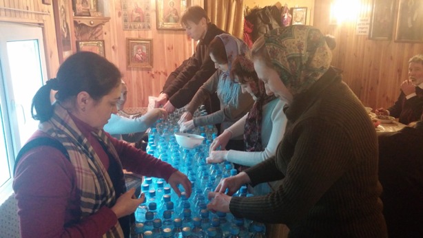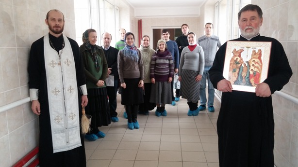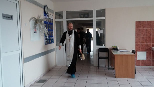 Позже, прихожане обошли все отделения Института рака, где поздравили тех, кто проходит лечение, а так же мед.персонал с Праздником - окропив все помещения, и раздав бутылочки с Великой агиасмой.