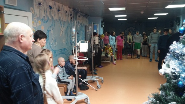 Позже волонтеры обошли все палаты, где батюшка окропил Крещенской водой всех, кто проходит лечение.