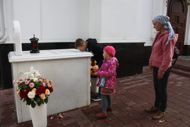 В храме Двенадцати Апостолов дети и взрослые смогли приложиться к мощам киевского святого, иеросхимонаха Киево-Печерской лавры, подвижника XIX века, преп. Феофила, Христа ради юродивого и испросить помощи. На территории монастыря также находятся мощи прп. Досифеи, захороненные под спудом, у северной стены храма и в особом ковчежце личные вещи прп. Серафима Саровского.