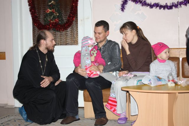 После молебна, детей в каждом из отделений ждала самая интересная для них часть поздравлений – подарки! Каждому ребенку вручили необычной формы шоколадки, надувные шарики, пряники, игрушки, фруктовые и конфетные наборы, а некоторым детям, благодаря спонсорской поддержке, вручили небольшие индивидуальные подарки.