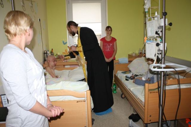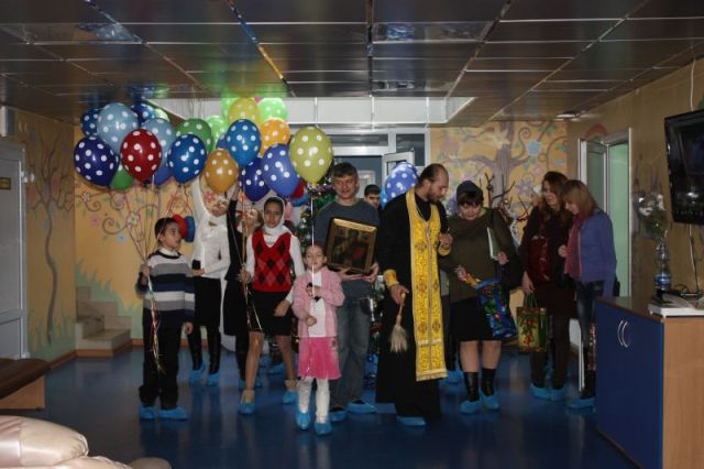 Атмосфера свята в ці дні прийшла і до дітлахів з трьох найважчих відділень Національної дитячої спеціалізованої клініки «ОХМАТДИТ» – у кожному відділенні настоятель храму Почаївської Божої Матері протоієрей Олексій Артюх та протоієрей Владислав Доломанський відслужили святковий молебень, попросивши присутнім зціленні від недуги, та вручили подарунки маленьким пацієнтам.